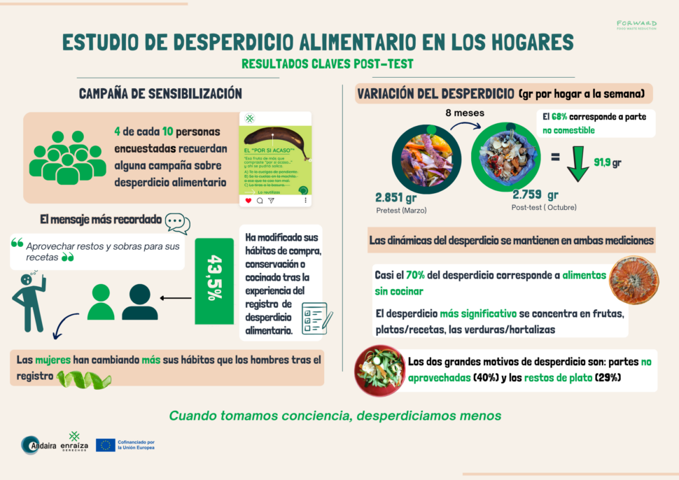In the case of households, Andaira leads the research with a literature review, a qualitative behavioural study and a quantitative measurement of food waste. With these results, a campaign has been designed targeting the groups that waste the most, with the objective of achieving a reduction of 5% to 10% in food waste.